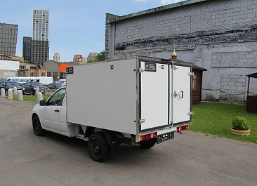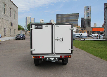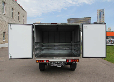 Промтоварный фургон заводского исполнения, обшивка фургона снаружи - плакметалл, внутри - обрешетка, настил пола – ламинированная фанера. Дополнительная боковая дверь в стандартном исполнении.