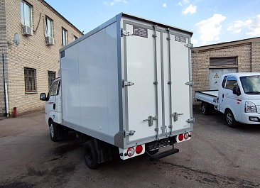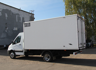Задние колёса односкатные R16 Cargo. По запросу возможна переоборудование в рефрижератор с использованием стенок толщиной 80–100 мм, выполненных методом вакуумной склейки без мостиков холода, что обеспечивает высокую жёсткость и низкий вес. Внешняя отделка — глянцевый стеклопластик. Дополнительно устанавливаются блокировка боковой сдвижной двери в грузовой отсек, тепловая завеса из ПВХ, отопитель Planar 44D12, а также холодильная установка на выбор: Carrier CITIMAX 350 (США, тепло-холод) или THERMO King Touch log (США, поверка на 2 года). Сохраняется салонный кондиционер. В стоимость включена сигнализация. Цена указана с учётом НДС.