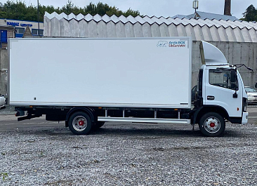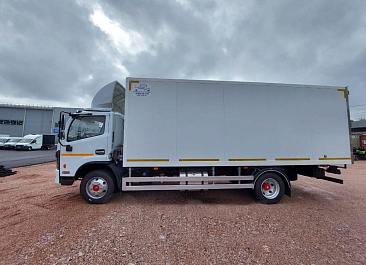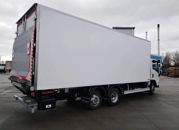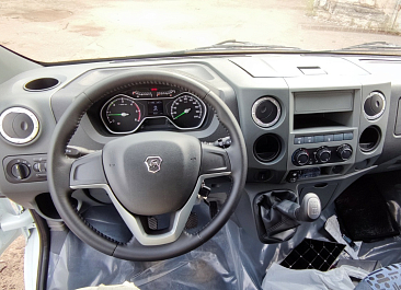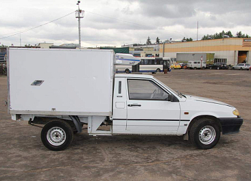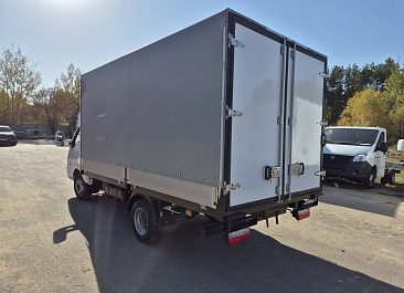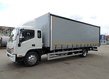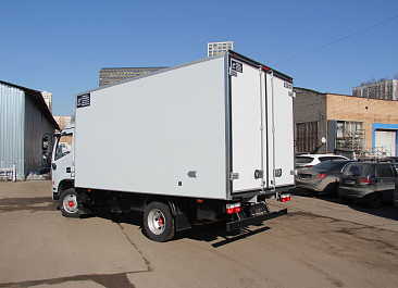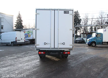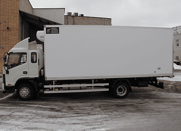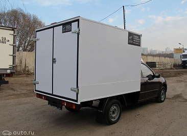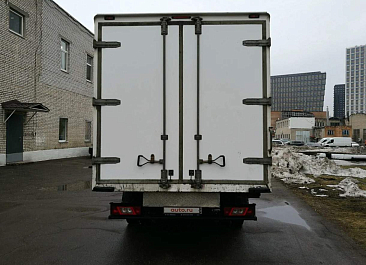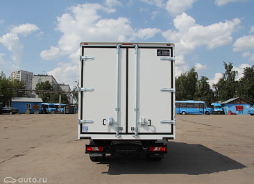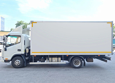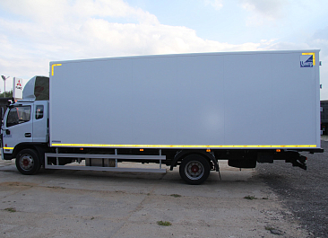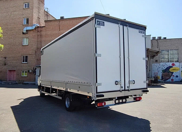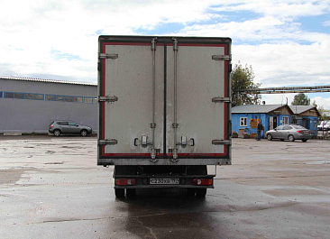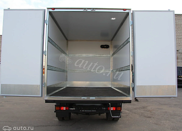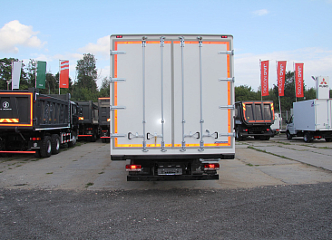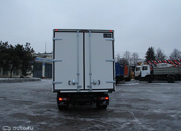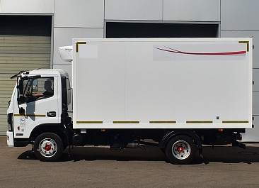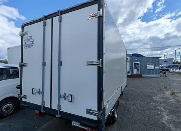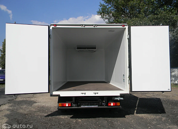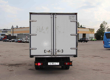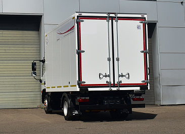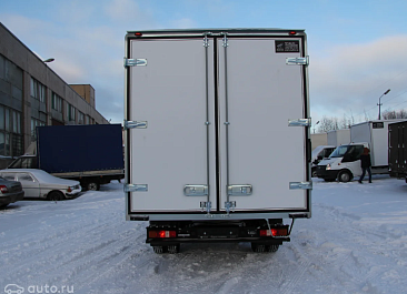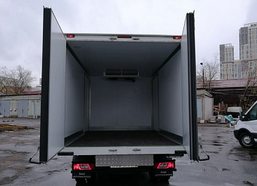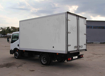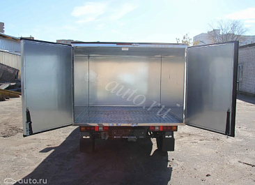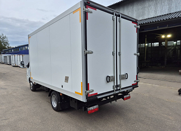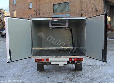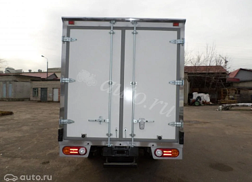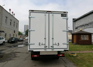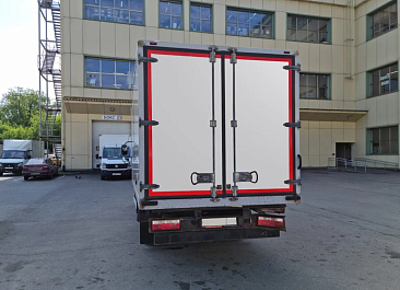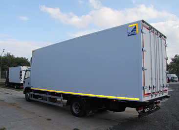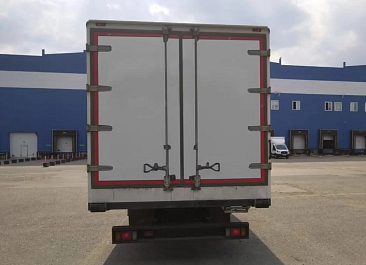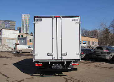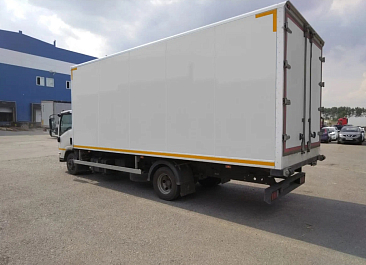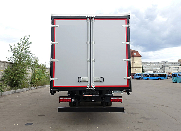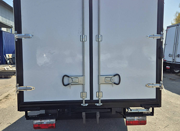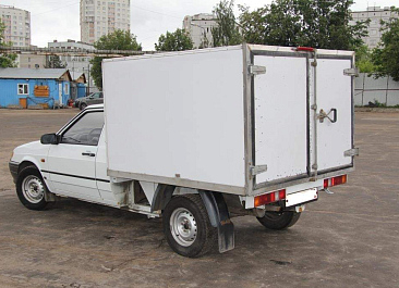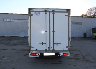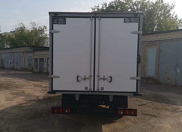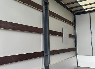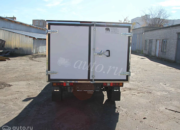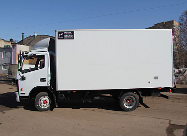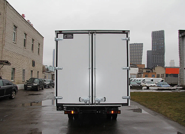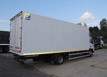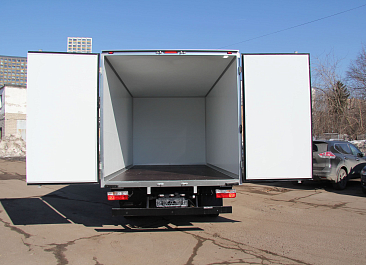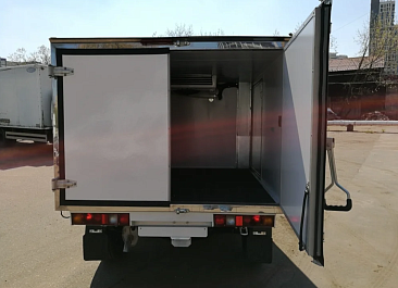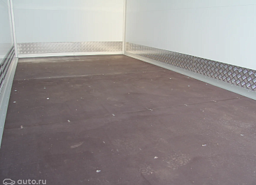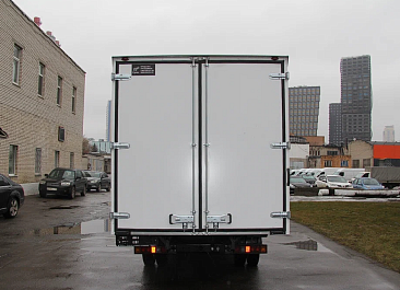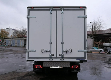 Фургон из сэндвич-панелей высокой изотермичности (Утеплитель ПеноПолиСтирол; Толщина панелей: боковые стены – 60 мм; передняя стенка/потолок/задние двери – 80 мм; панель пола – 110 мм) обшивка фургона снаружи и внутри – плакметалл, наружное обрамление фургона – оцинкованный окрашенный уголок, задняя рамка фургона – оцинкованная окрашенная сталь, фурнитура дверей – оцинкованная сталь, пол – сетчатая фанера +отбортовка из рифленого алюминия высотой 15 см. Задние пластиковые крылья с резиновыми брызговиками.