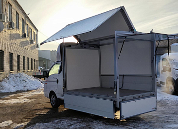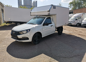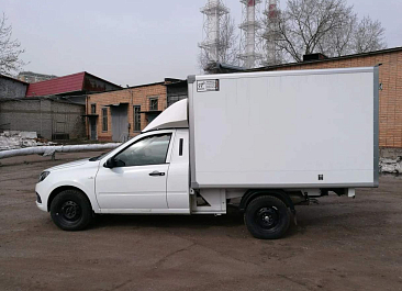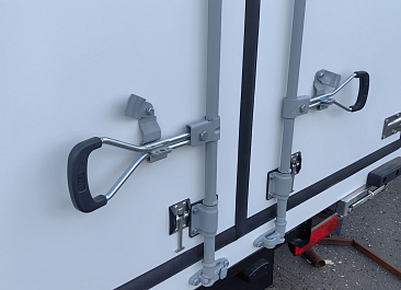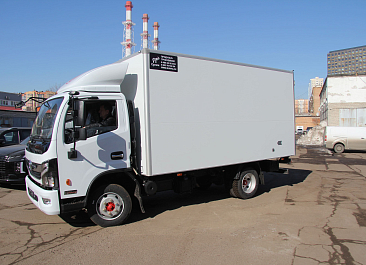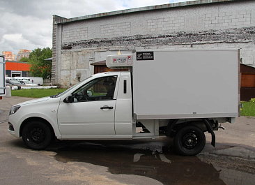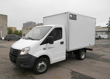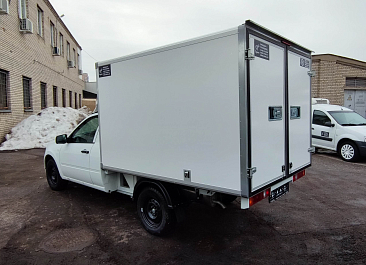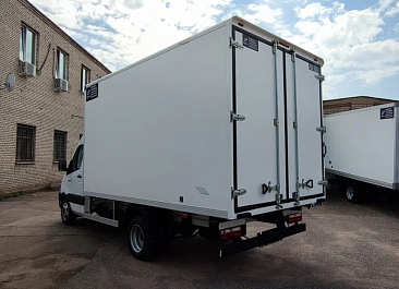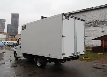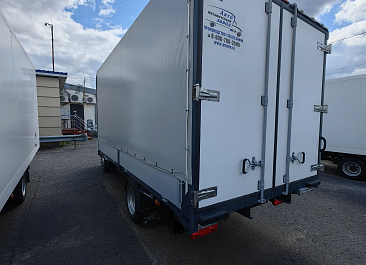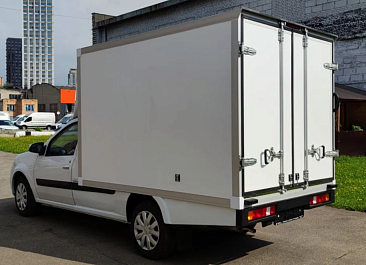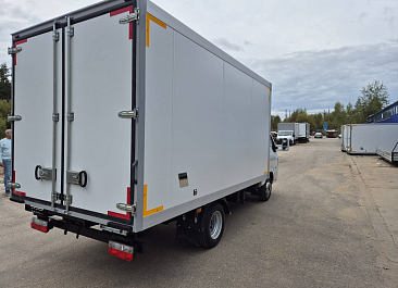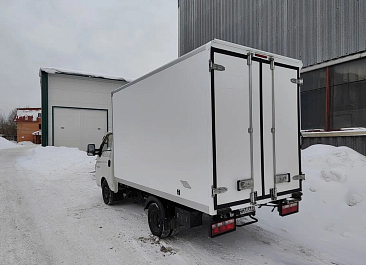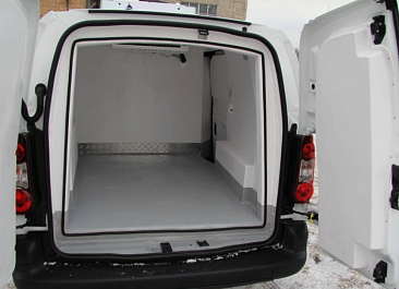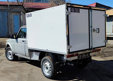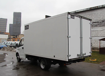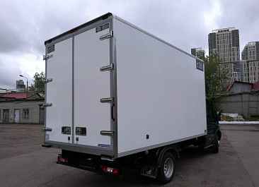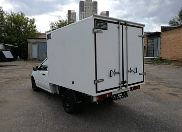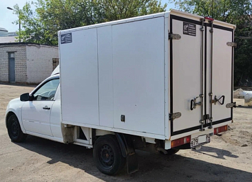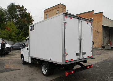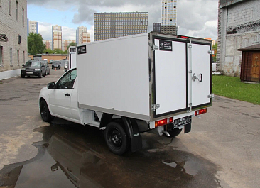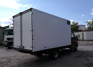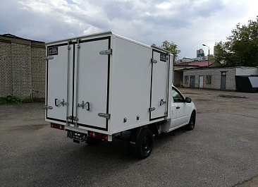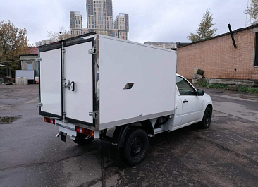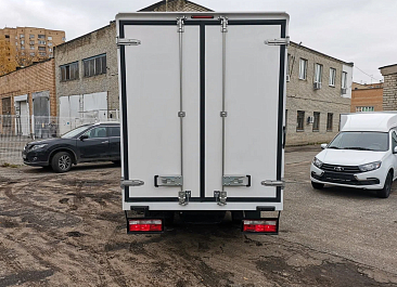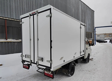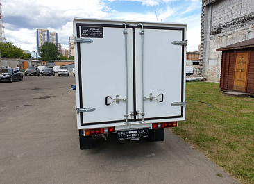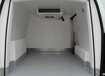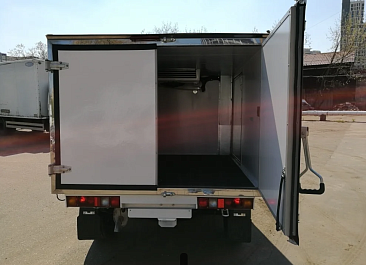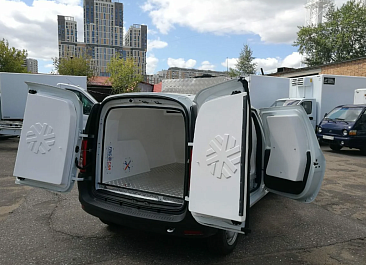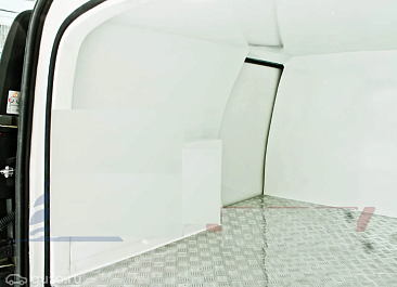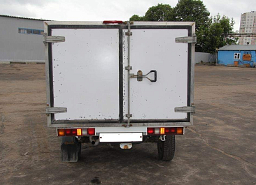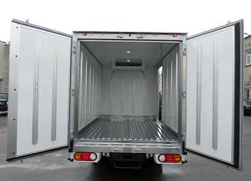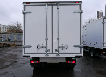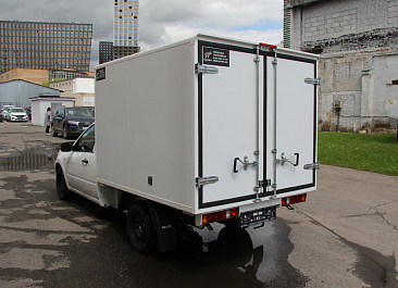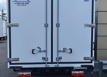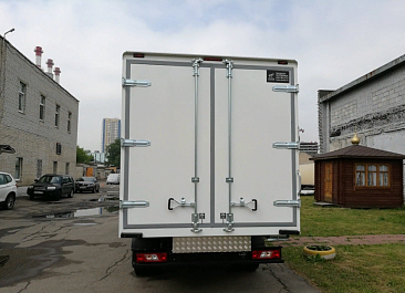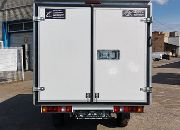 Фургон из сэндвич панелей (утеплитель ППС экструдированный 50 мм (теплопроводность 0,035 вт/м3), обшивка фургона – оцинкованная сталь с полимерным покрытием, наружное обрамление фургона – анодированный алюминиевый уголок, задняя рамка фургона и фурнитура дверей – оцинкованная сталь, пол – ламинированная сетчатая фанера, плафон освещения внутри фургона.