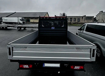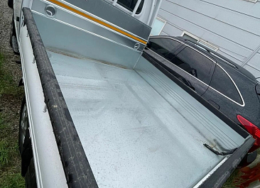 Бортовая платформа стальная, борта: алюминиевое обрамление + ламинированая фанера, задний борт — откидывающийся, пол — сетчатая влагостойкая фанера.