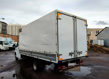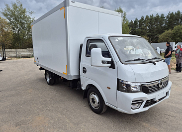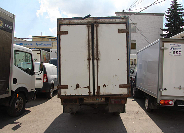 Фургон промтоварный, обшивка фургона – плакметалл, наружное обрамление фургона и задняя рамка фургона – окрашенный стальной уголок, фурнитура – оцинкованная, настил пола – транспортная фанера.