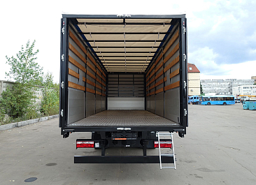 Бортовая платформа стальная, борта сталь + ламинированная фанера, задний борт — откидывающиеся, пластиковый колпак с открывающейся вверх задней дверью. Пол — сетчатая влагостойкая фанера, задние пластиковые крылья с резиновыми брызговиками.