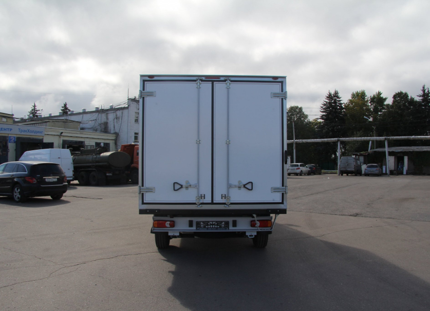 Стены выполнены по сэндвич технологиям: оцинкованная сталь с полимерным покрытием наклеена на фанеру для большей жесткости фургона, наружное обрамление фургона – анодированный алюминиевый уголок, задняя рамка фургона и фурнитура дверей – оцинкованная сталь, пол – ламинированная сетчатая фанера, плафон освещения внутри фургона.