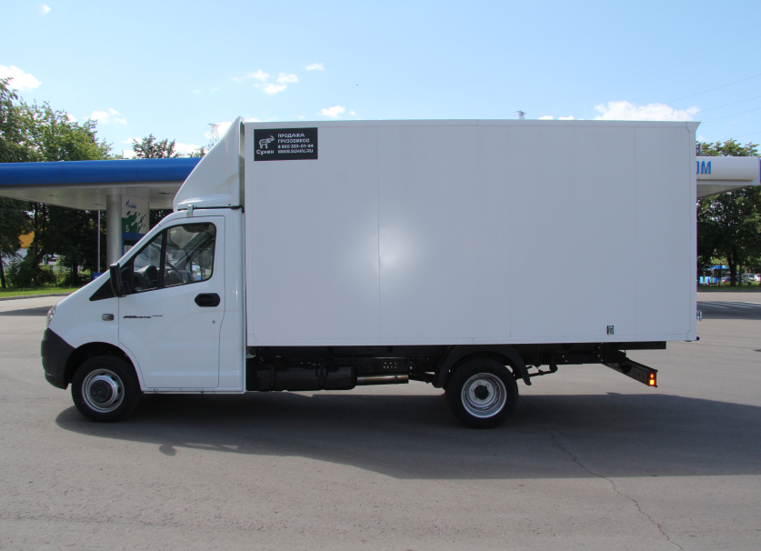 Стены выполнены по сэндвич технологиям: оцинкованная сталь с полимерным покрытием наклеена на фанеру для большей жесткости фургона, наружное обрамление фургона – анодированный алюминиевый уголок, задняя рамка фургона и фурнитура дверей – оцинкованная сталь, пол – ламинированная сетчатая фанера, плафон освещения внутри фургона.