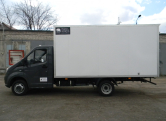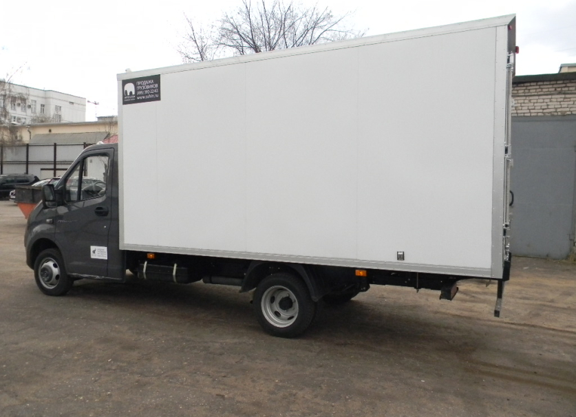 Стены выполнены по сэндвич технологиям: оцинкованная сталь с полимерным покрытием наклеена на фанеру для большей жесткости фургона, наружное обрамление фургона – анодированный алюминиевый уголок, задняя рамка фургона и фурнитура дверей – оцинкованная сталь, пол – ламинированная сетчатая фанера, плафон освещения внутри фургона.