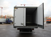Фургон из сэндвич панелей (утеплитель ППС экструдированный 50мм (теплопроводность 0,035 вт/м3), обшивка фургона – оцинкованная сталь с полимерным покрытием, наружное обрамление фургона – анодированный алюминиевый уголок, задняя рамка фургона и фурнитура дверей – оцинкованная сталь, пол – ламинированная сетчатая фанера, плафон освещения внутри фургона.