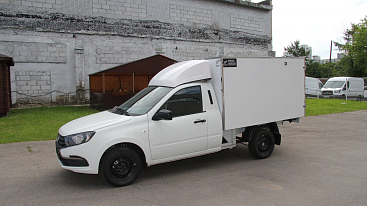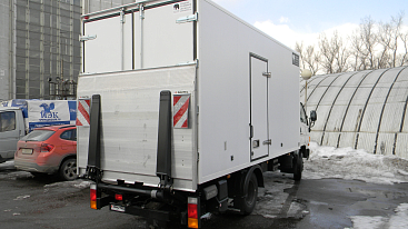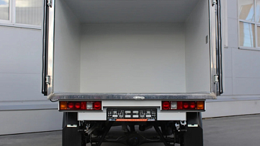 Стены выполнены по сэндвич технологиям: оцинкованная сталь с полимерным покрытием наклеена на фанеру для большей жесткости фургона, наружное обрамление фургона – анодированный алюминиевый уголок, задняя рамка фургона и фурнитура дверей – оцинкованная сталь, пол – ламинированная сетчатая фанера, плафон освещения внутри фургона.