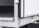 Фургон высокой изотермичности из сэндвич-панелей (ППУ 60/80/100 мм), обшивка фургона снаружи и внутри – плакметалл, наружное обрамление фургона (анодированный алюминиевый уголок) окрашенная оцинкованная сталь, фурнитура- оцинкованная сталь. Задние двери — распашные, открывающиеся на 270 град., фиксирующиеся в открытом положении (фиксаторы TIR), со специальным уплотнением по периметру, на каждой створке — 2 замка контейнерного типа PUSH с резиновым отбойником в верхней части одного из замков, 4 петли. Внутреннее освещение — в виде утопленных плафонов с включением из кабины, а/м; Внешнее освещение: установка устройства освещения и световой сигнализации в соответствии с требованиями Правил № 48.03 ЕЭК ООН.